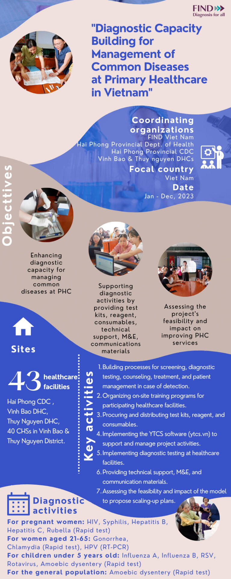 HAI PHONG, JUNE 21, 2023 – The highly anticipated kickoff meeting and training session for the “diagnostic capacity building for management of common diseases at primary healthcare (PHC) in Viet Nam” project, led by FIND, took place from 14–16 June in Hai Phong city, Viet Nam.