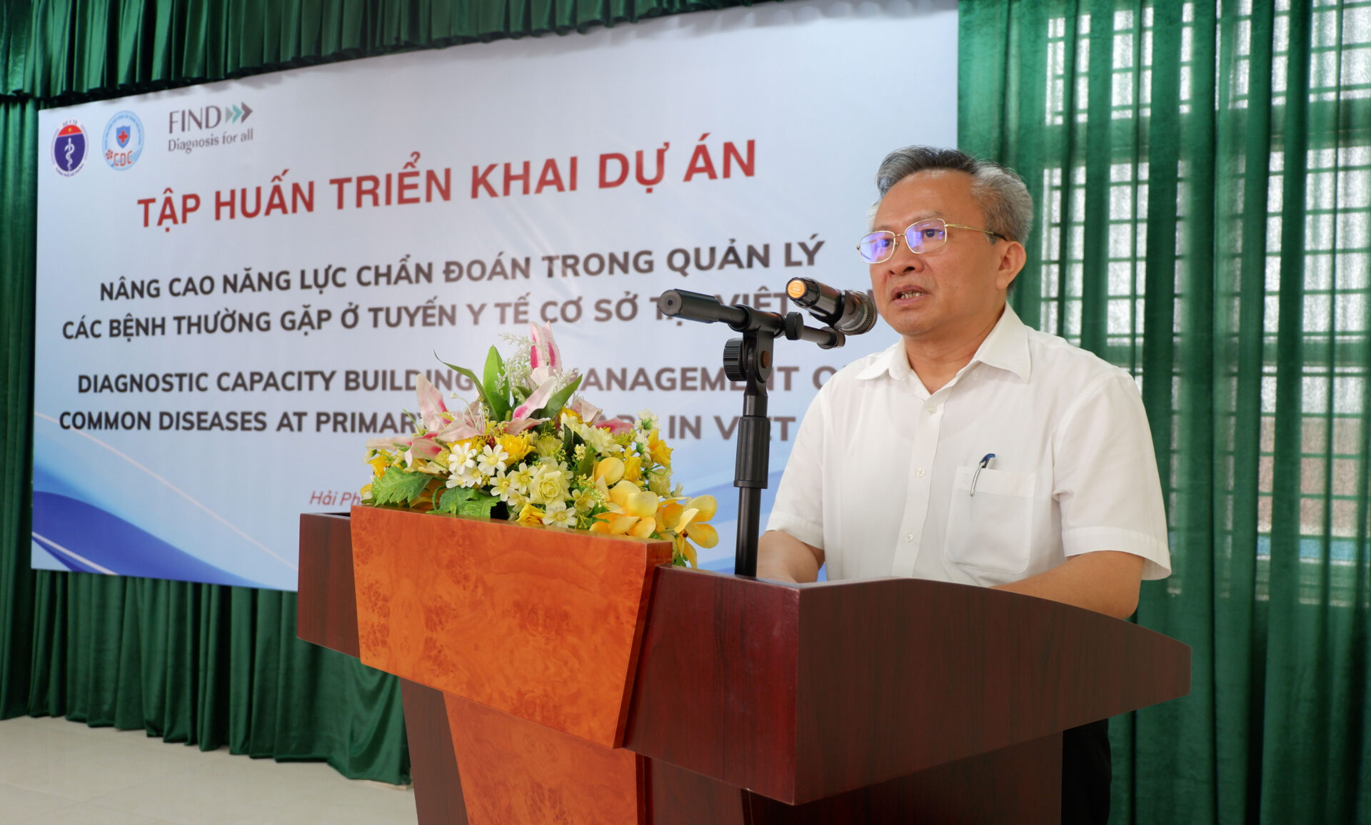 HẢI PHÒNG, 21 THÁNG 6 NĂM 2023 – Nằm trong khuôn khổ dự án “Nâng cao năng lực chẩn đoán trong quản lý các bệnh thường gặp ở tuyến y tế cơ sở (YTCS) tại Việt Nam”, buổi họp khởi động dự án và khoá tập huấn do FIND chủ trì đã diễn ra từ ngày 14 đến 16 tháng 6 tại Hải Phòng, Việt Nam. Tham gia tại buổi lễ có BSCKII Trần Quốc Trinh – Phó Giám đốc Sở Y tế Hải Phòng; BSCKII Tăng Xuân Khoa – Giám đốc Trung tâm Kiểm soát Bệnh tật (CDC) thành phố Hải Phòng; ThS.BS. Khổng Hữu Cương – Giám đốc Trung tâm Y tế (TTYT) huyện Vĩnh Bảo; TS. Nguyễn Thị Vân Anh – Trưởng Văn phòng FIND Việt Nam; các chuyên gia lâm sàng khách mời, điều phối viên dự án, các chuyên gia lâm sàng và xét nghiệm của Sở Y tế Hải Phòng, CDC Hải Phòng và FIND Việt Nam, cùng với hơn 50 đại diện của các đơn vị triển khai dự án đến từ CDC Hải Phòng, TTYT huyện và 10 trạm y tế (TYT) xã thuộc huyện Vĩnh Bảo, Hải Phòng.
